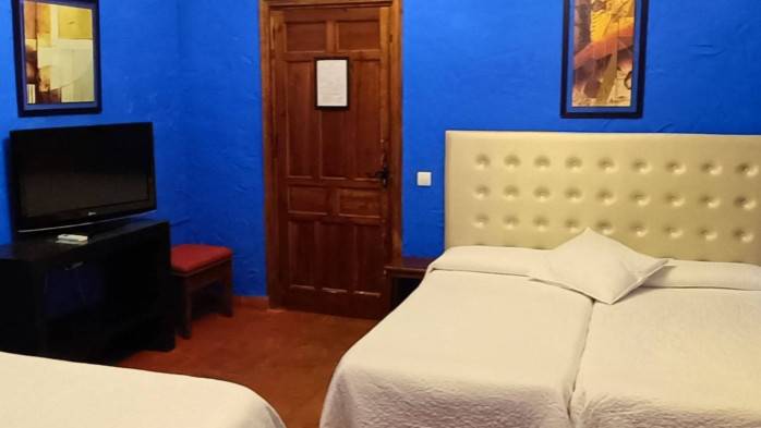 Las habitaciones están equipadas con mobiliario de castaño o forja, suelos barro rustico, techos con vigas de madera, armarios roperos, clima calor-frío, baño completo con plato ducha , wifi gratuíta, televisores de pantalla plana y bonitas vistas al jardín.Salida directa a la calle. Ideal para grupo de amigos